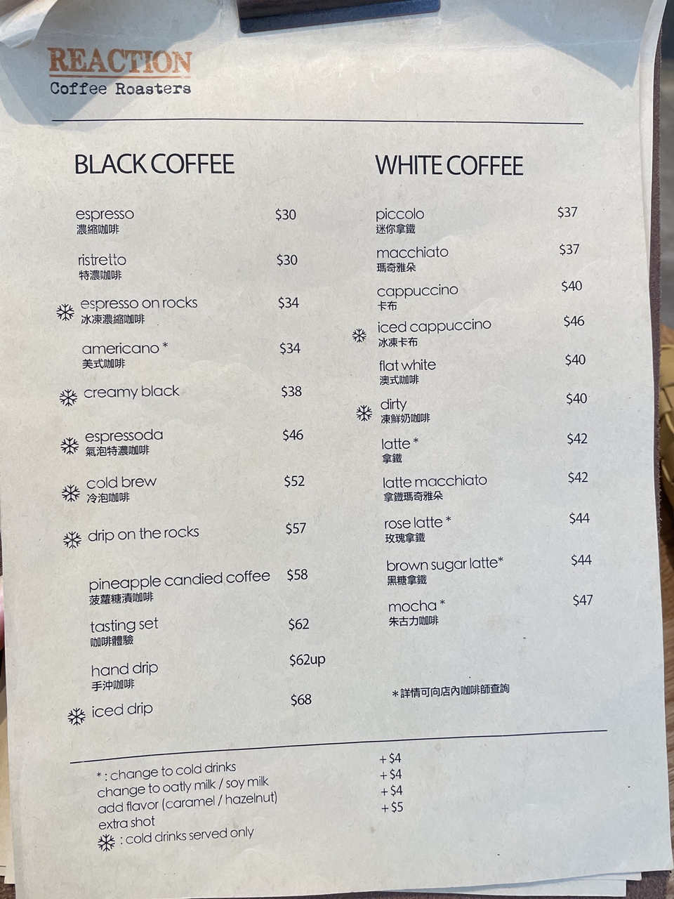 Reaction Coffee Roasters's Menu Western Coffee Shop in Tsim Sha Tsui Reaction Coffee Roasters Menu We freshly roasted specialty coffee in hong kong. And more welcome to our happy. Spaghetti aglio e olio 綾 degree 180 salad smoked salmon egg benedict. Just added to your cart. This is one of those hot places that gets crowded. new menu alert!! reaction coffee roasters's menu, located at shop b & c, g/f, 67 sing woo. Reaction Coffee Roasters Menu.